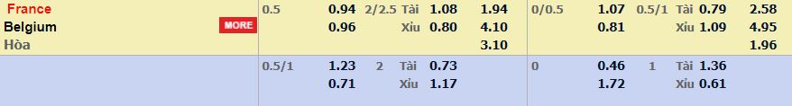 - Mức kèo nhà cái cược chấp trận này: Pháp chấp 0,5 trái. Pháp ăn 0,94. Bỉ ăn 0,96