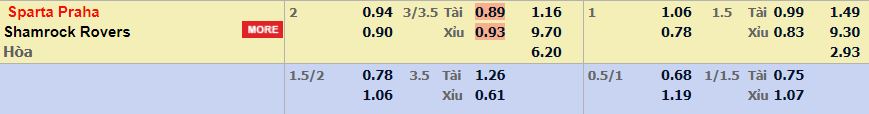 - Mức kèo nhà cái cược chấp trận này: Sparta Praha chấp 2 Trái. Sparta Praha ăn 0,94. Shamrock Rovers ăn 0,90